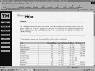 Eine gelungene Seite (im Gegensatz zum Bären) der Firma „Taxen Müller“.